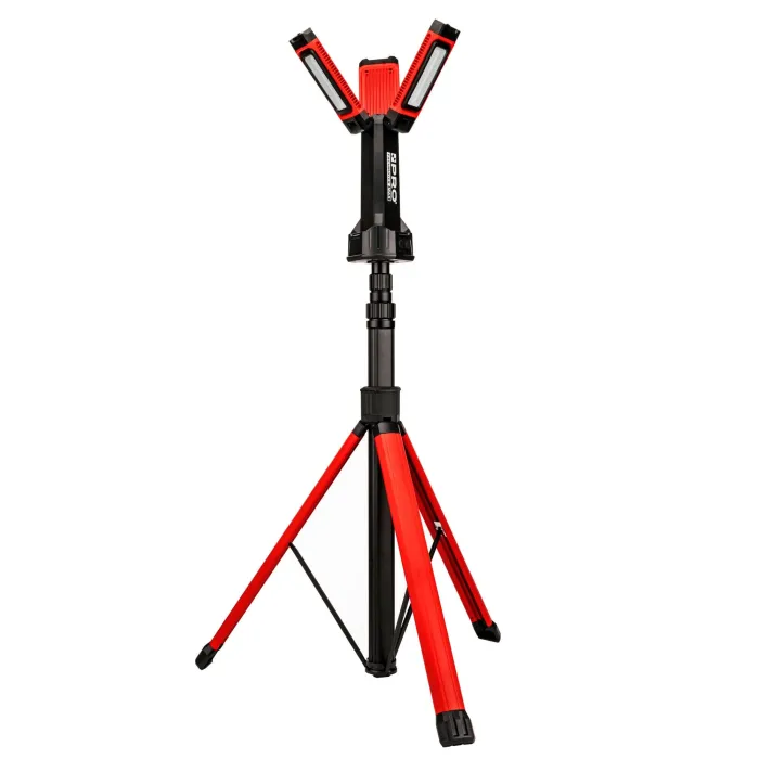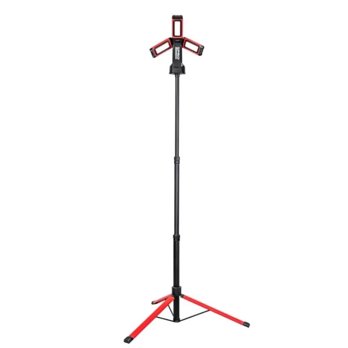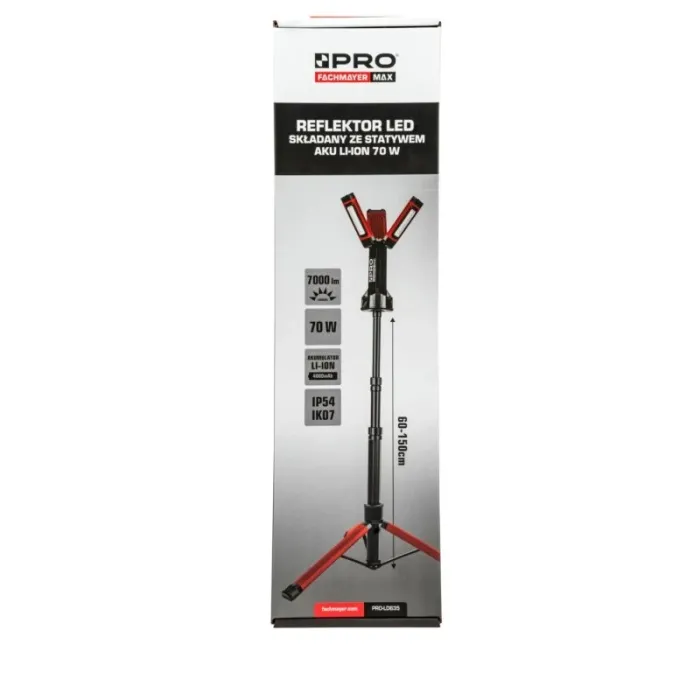Прожектор, оборудван със сгъваема кука за лесен монтаж на удобно място три силни магнита. Има степен на защита IP54, което го прави устойчив на атмосферни влияния и прах. Има степен на защита IK07, което го прави устойчив на удари с енергия 2 J. Възможност за работа с прикачено зарядно устройство. Сгъваем LED прожектор със специална стойка 1,5 м, оборудван с 66 SMD LED диода. Въртящи се светлинни глави, позволяващи регулиране на ъгъла на всяка светлинна глава във всяка посока. Корпус на прожектора, изработен от алуминий и издръжлива ABS пластмаса. Стойка, изработена от комбинация от алуминий, ABS пластмаса.