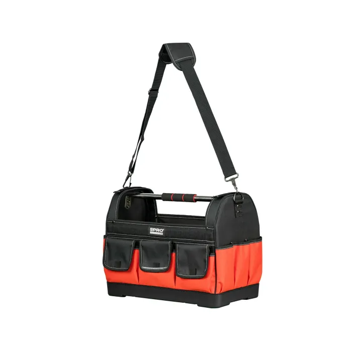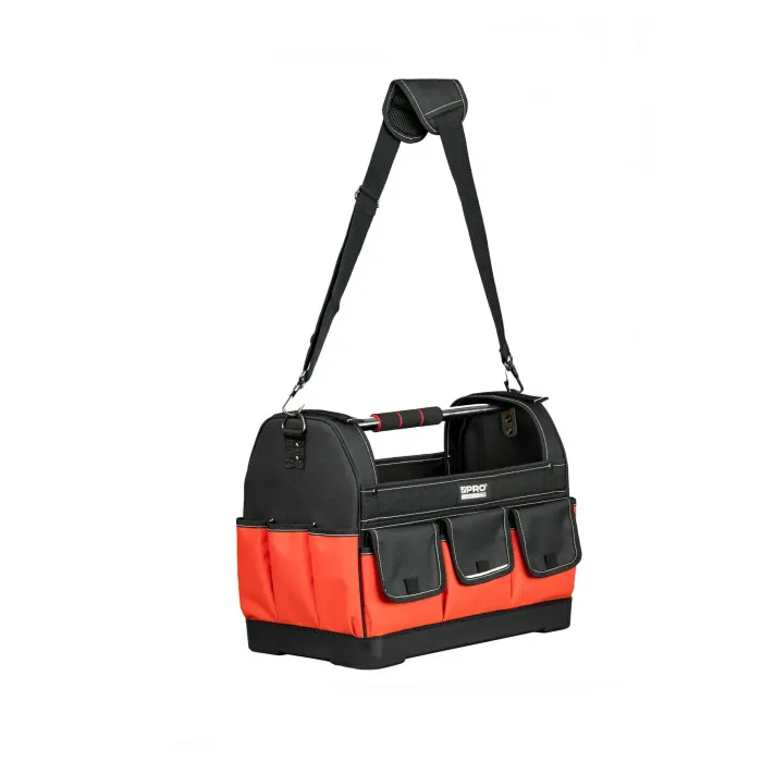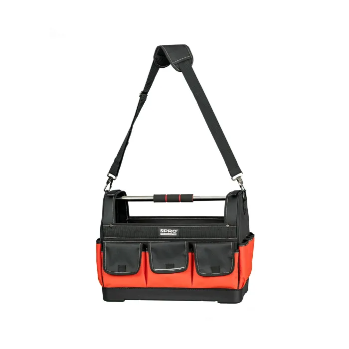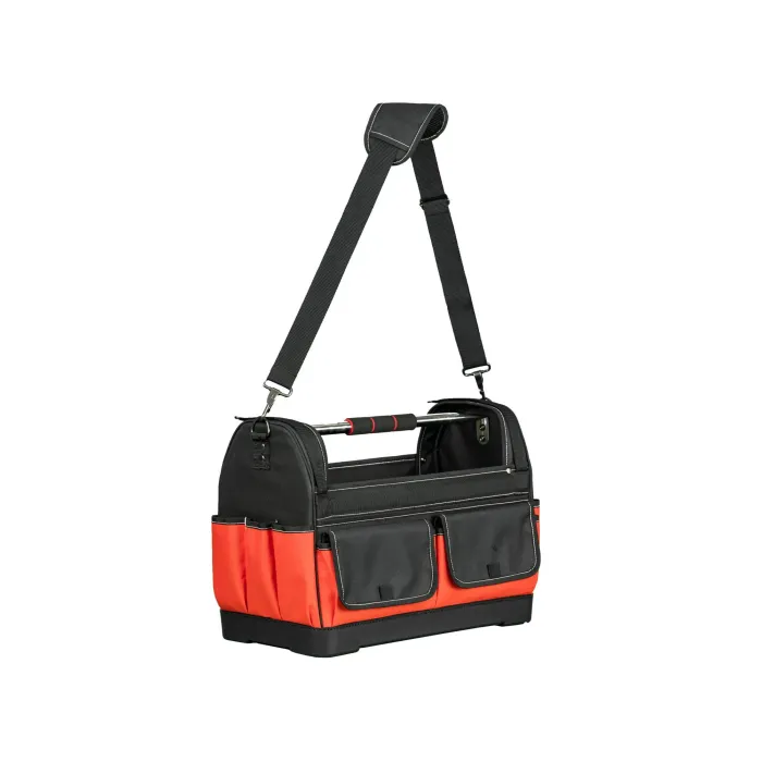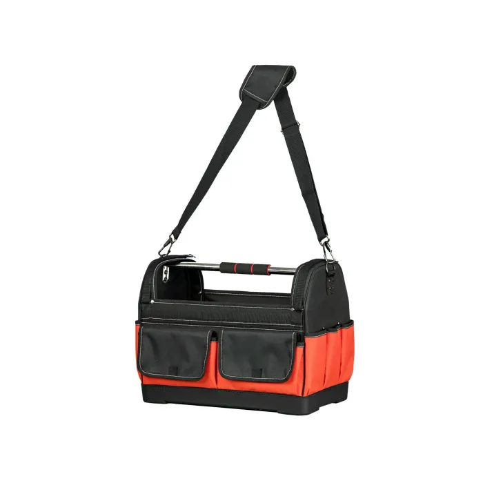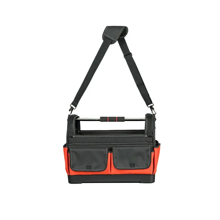 Разполага с подсилено дъно и светлоотразителни елементи. Регулируеми кукички от двете страни за транспортиране на нивелир. Чанта оборудвана с 13 външни джоба и 12 вътрешни джоба за инструменти, отвертки, моливи, клещи и др.