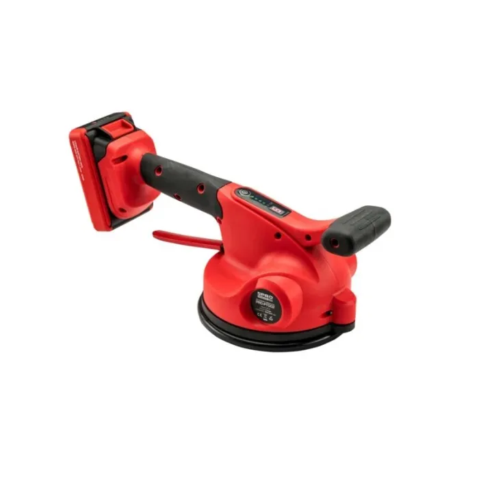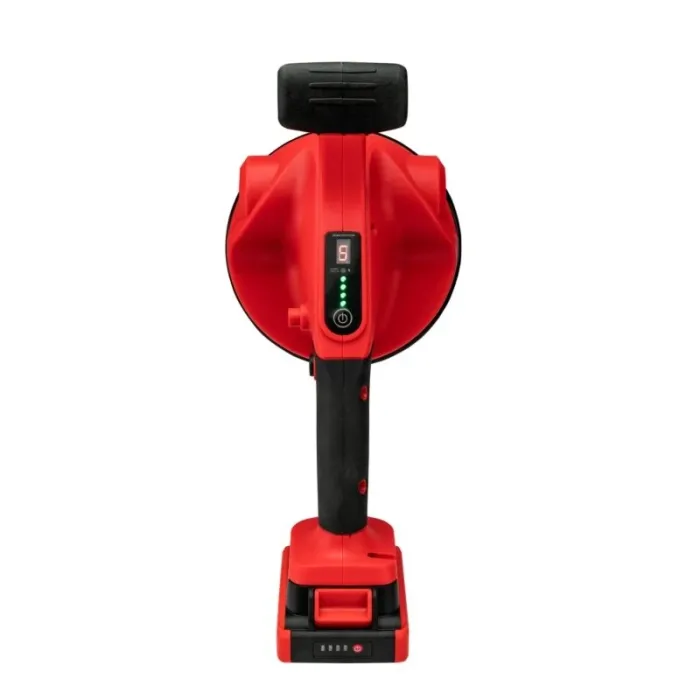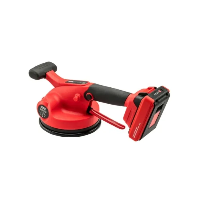 Улеснява позиционирането и преместването на плочки (възможна товароносимост до 70 кг). Регулируема сила на вибрациите - 6 нива. Дисплей, показващ текущото ниво на вибрации. Оборудван с две дръжки, покрити с противоплъзгаща гума, осигуряващи сигурен и стабилен захват. Работна част, изработена от нитрилен каучук с диаметър 166 мм. Дизайнът с вендуза позволява работа с една ръка. Предназначен за плочки с най-дълга страна над 1,2 м. Осигурява равномерно разпределение на лепилото или хоросана под плочките по време на монтажа. Вибрациите елиминират въздушните мехурчета между лепилото и повърхността на плочката, които могат да причинят напукване.