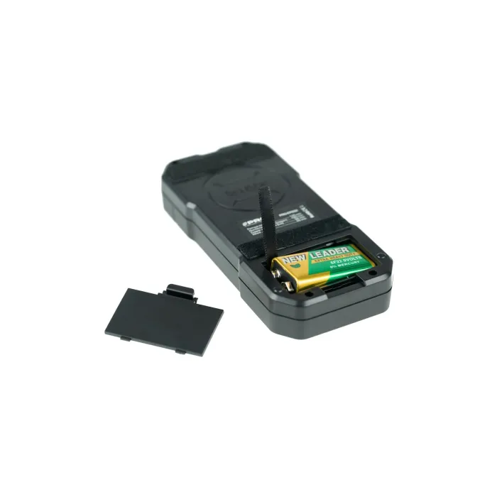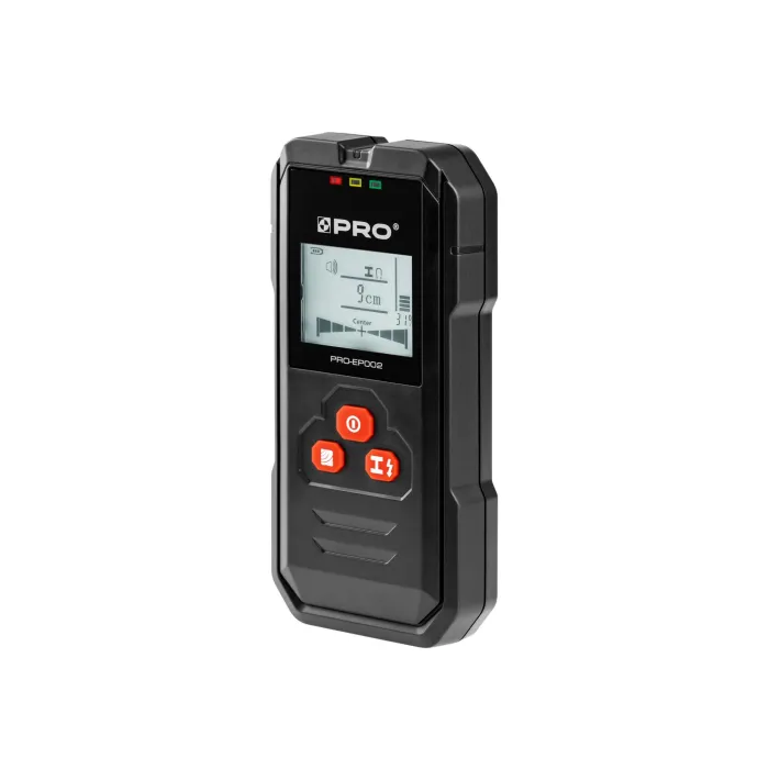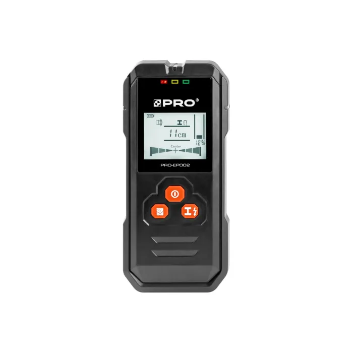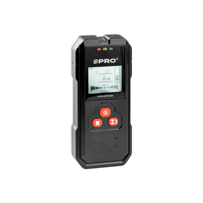 Задната част на детектора е покрита с мек материал, за да се предотврати повреда както на тестваната работна повърхност, така и на самия детектор. Детектор за откриване на метали (стомана, медни тръби) и проводници в тухлени стени, тавани и подове. Също така открива дървени греди, метали и жици, скрити зад гипсокартон. Голям и ясен дисплей. Звукова и визуална сигнализация. Регулиране на режима на работа. Автоматично изключване след 5 минути бездействие.