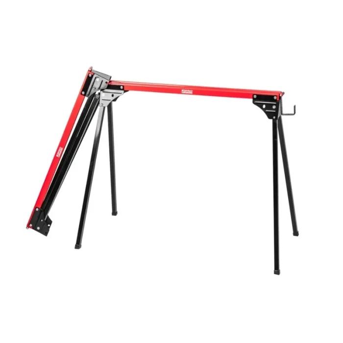 Сгъваем дизайн – сглобете масата за секунди, благодарение на бързите конектори и краката, които се сгъват плоско. Дървени държачи – 2 стоманени куки позволяват бързо закрепване на греди 10 x 5 см, създавайки стабилна работна повърхност. Товароносимост от 500 кг на стойка – здравата метална конструкция осигурява надеждност дори при голямо натоварване.