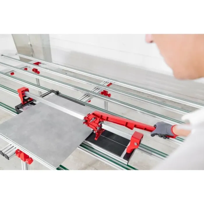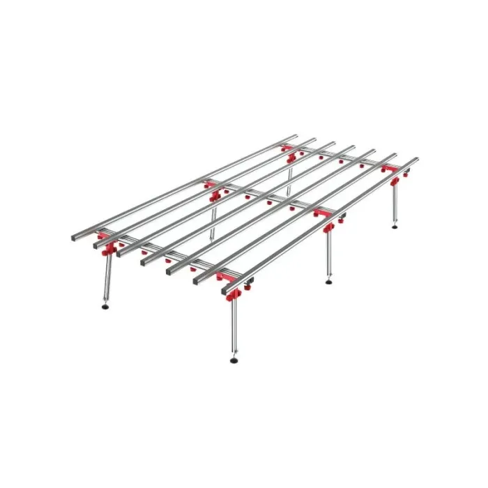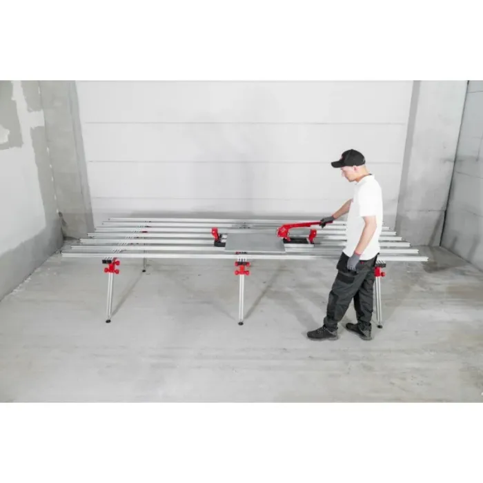 Здрава и стабилна алуминиева конструкция, осигуряваща комфортна работа. Лесен монтаж и демонтаж, възможен в няколко лесни стъпки. Възможност за разширяване на площта чрез сглобяване на допълнителни маси. Маса за керамични плочки, предназначена за обработка на плочки с голям формат.