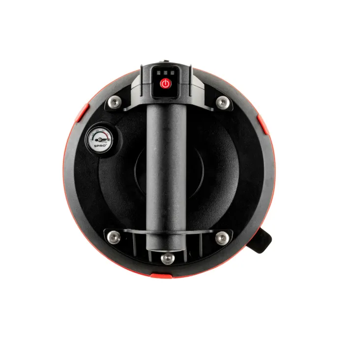 тяло, изработено от лек и издръжлив материал. Оборудван с електрическа вакуумна помпа, която позволява бързо и сигурно закрепване и освобождаване на материали. Вендуза, снабдена с манометър. Автоматична вендуза, предназначена за транспортиране на елементи с плоски и гладки повърхности, като например: стъкло, плочки, ламарина или ламинати.