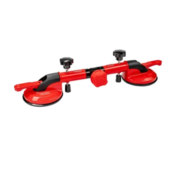 Предназначен за елементи с плоски и гладки повърхности, като например: стъкло, плочки, метални листове или ламинати. Оборудван с две нитрилни гумени чашки с диаметър 118 мм, дължина на дръжката: 42 см. Корпус, изработен от лек и издръжлив алуминий. Оборудван с ергономична дръжка и лостове, които позволяват бързо и сигурно монтиране и освобождаване на материали. Разделената на половина дръжка позволява задаване на ъгъл между полаганите повърхности по време на монтажа в диапазона от 90-270°, също така позволява регулиране на взаимното положение на повърхностите на материала в диапазон от 10 мм.
