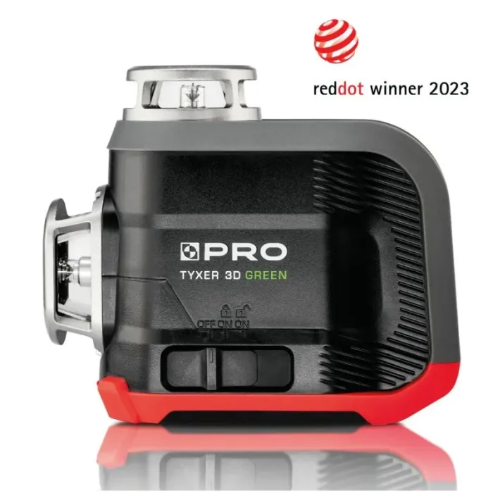 Режимът на определяне на наклон се индикира от мигане на лъча на всеки 5 секунди. Импулсният режим за работа с детектор увеличава обхвата на работа с лазера. В работни среди със слаба околна светлина, той може да се използва като ECO функция за удължаване на работното време и подобряване на комфорта на потребителя. Функция за лазерен отвес - напречната ос на тавана и земята определя отвеса. Лазерът се самонивелира благодарение на магнитното махало. Многослойният лазер TYXER 3DG генерира 3 равнини на 360°, една хоризонтална и две вертикални, пресичащи се под ъгъл от 90°. Функцията за заключване на махалото позволява определянето на всякакви наклони. Устройството е с клас на защита IP54. Наклонът на устройството извън работния диапазон от ±3° се индикира с бързо мигане на лазерната линия. ¼” резба в основата на лазера позволява бърз и лесен монтаж на статив или регулируем прът.