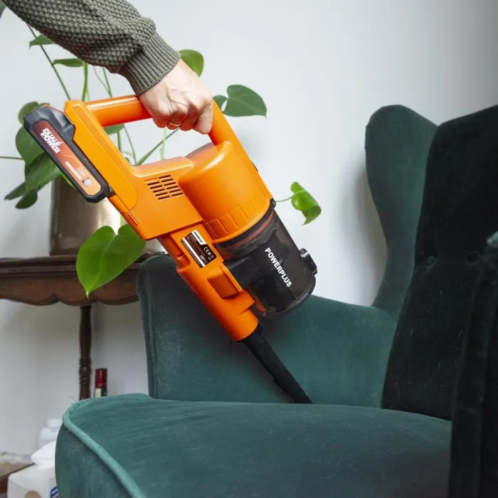 С всмукателна мощност от 20 kPa (65 AW), тази мощна прахосмукачка лесно премахва прах и трохи от маси, пукнатини, мебели и други. Край на влаченето на тежка прахосмукачка или търсенето на контакт. С тази мощна, но лека прахосмукачка от Powerplus, почистването е без усилие. Използвайте я като прахосмукачка за подове или свалете вала, за да се справите бързо с по-малки задачи с ръчната прахосмукачка.