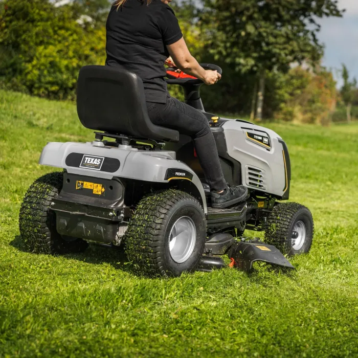 TTS108H е издръжлив трактор за трева, който можете да използвате за косене на трева в продължение на много години - и за много повече от това. Включени са нож за мулчиране и кука за теглене, а в TEXAS можете да получите много практични аксесоари, така че да можете да косите вертикално, да разпръсквате сол или семена, да шофирате с ремарке или да премахвате мъх, като по този начин направите вашия трактор за трева много по-полезен.