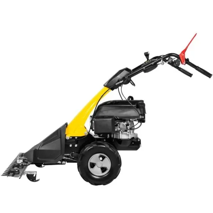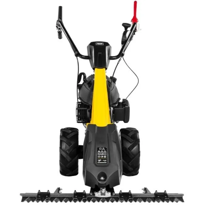 Има двигател TG670 TEXAS, който задвижва както самоходните колела, така и ножа отпред, така че можете ефективно да преминавате през големи площи с висока трева. Колелата са здрави и без въздух или тръби, така че са здрави и няма да спукате гума по време на работа. С тегло от 55 кг, косачката за пръсти е едновременно здрава и стабилна за работа, когато сцеплението я движи напред с 2,5 км/ч. Ефективен самоходен тример за трева с голямо острие отпред, за да можете лесно да косите висока, дива трева по поляни, канавки или други диворастящи райони.