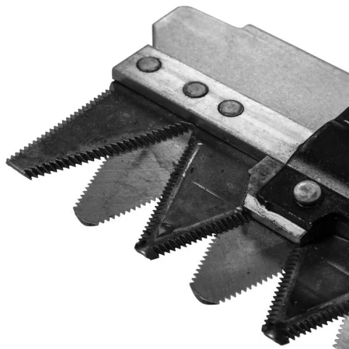 Ножът има регулируеми по височина защитни плочи, така че можете безстепенно да избирате височина на косене между 30 мм и 60 мм, в зависимост от това колко ниско искате да косите вашата площ с дива трева.
