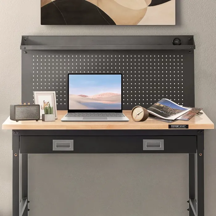 Множеството подсилени напречни греди елиминират всяко клатене, позволявайки ви да работите с пълна увереност и фокус върху детайлите. Забравете за нестабилността – вашата повърхност остава неподвижна, независимо от натоварването. Изградена от висококачествена въглеродна стомана и завършена с работен плот от масивна дървесина, тази работна маса е еталон за устойчивост.