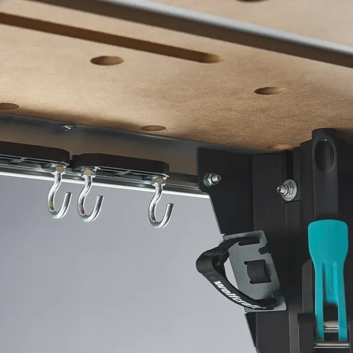 Плотът е с обезопасителна блокировка, съвместим с много машини от търговската мрежа. Масата за инструменти 4 в 1 Master cut 2200 е подхозяща за употреба като маса за настолен циркуляр, маса за прободен трион, работна станция и по избор като маса за фрезоване. Масата е мобилна и компактна за съхранение, благодарение на много компактен транспортен размер в сгънато състояние: 800x580x200 мм.