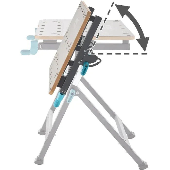 Удължителната плоча позволява разширяване на плота, като образува непрекъсната работна повърхност с размери 650x490 мм. Основната рамка е изработена от тръбна стомана и има функция за бързо сгъване. Master 650 Ergo е многофункционална маса с плот, който се накланя до 65°. Масата осигурява широчина на затягане 110 мм между дъскитеили до 410 мм между затягащите челюсти. В най-високата позиция може да се работи с вертикални детайли с широчина до 80 мм. Механизъм за лесно изтегляне с предпазител позволява индивидуално настройване на работната височина от 780 до 950 мм. Детайлите могат да се държат надеждно с помощта на 4 пластмасови челюсти и 2 тръбни скоби за закрепване на кръгли детайли.