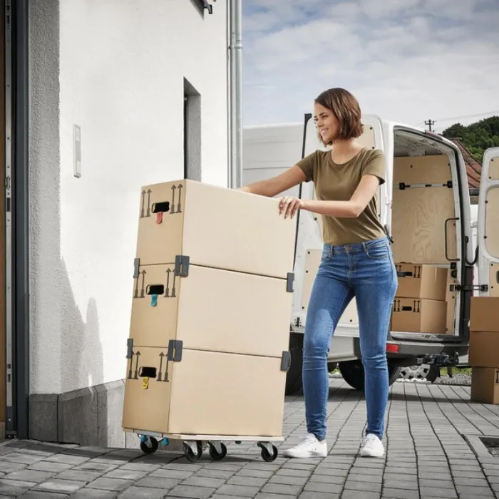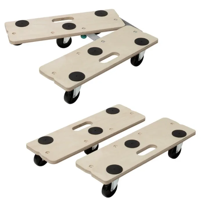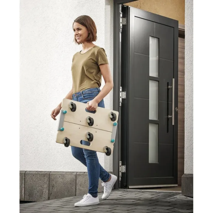 Благодарение на 6 монтирани въртящи се на 360° колела с диаметър 75 мм се управлява лесно. Количката за мебели FT 300 на фирма Wolfcraft е подходяща за транспортиране на товари с тегло до 250 кг. Носещата площ може да бъде разширена във V-образна форма с товароносимост до 200 кг. Разделена на части, издържа тегло до 100 кг. Изработена е от висококачествен брезов шперплат, свързан с водоустойчиво лепило. Има ергономични отвори за хващане, 6 опори срещу плъзгане за сигурно задържане на товара.