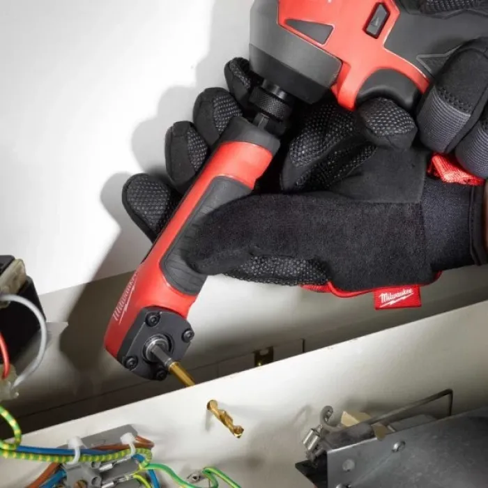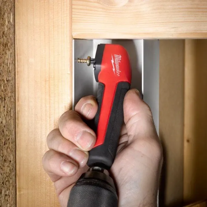 Тя е с 90° ъгъл и височина само 36 мм, за по-лесно монтиране на винтове на трудно достъпни места. Тя се предлага с набор от битове, от тип PH, PZ и TX. Те са с размери 10 х 25 мм и са 10 на брой. Ъгловата приставка има захват ¼" шестостен, съвместима е с всички най-нови ударни електрически и акумулаторни винтоверти и е с ергономичен дизайн и гумирано покритие.