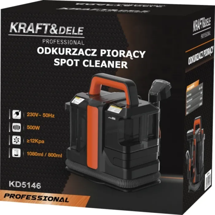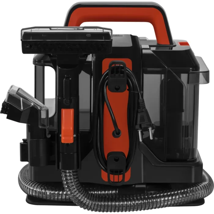 Благодарение на функциите си за пръскане и засмукване, тя ефективно премахва петна и освежава повърхностите за кратко време. Прахосмукачката е компактно и многофункционално устройство, предназначено за почистване на тапицерия, килими, автомобилни седалки и други текстилни повърхности.