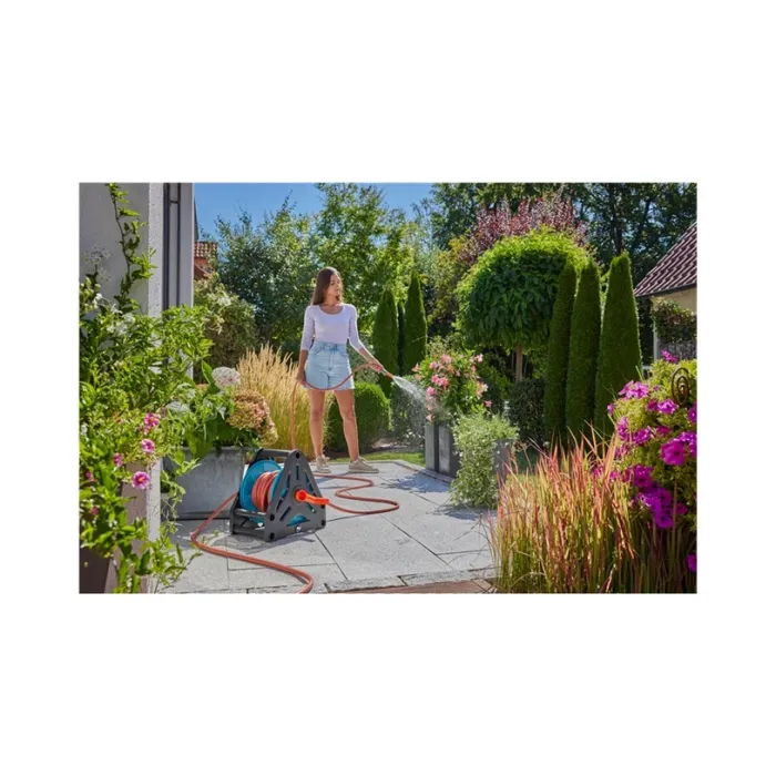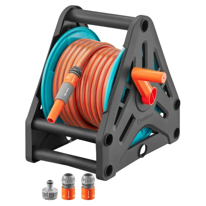 Висококачествен и издръжлив пластмасов корпус. Удобна ръкохватка за лесно навиване и развитие на маркуча. Компактни размери за оптимално съхранение и местене. Устойчивост на късане и загуба на вода благодарение на здравите и подсилени връзки. Този комплект съчетава удобство, качество и функционалност, за да осигури максимално лесно поливане и поддръжка на градината ви. Перфектното решение за поддръжката на вашата градина с GARDENA Макара за маркуч 20, комплект.