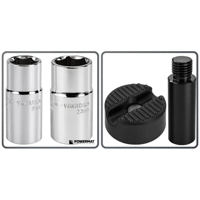 Комплектът включва крик, тресчотка, гаечен ключ и вложки, така че не губите време в търсене на инструменти. Това е готово решение за гаража и на пътя.
