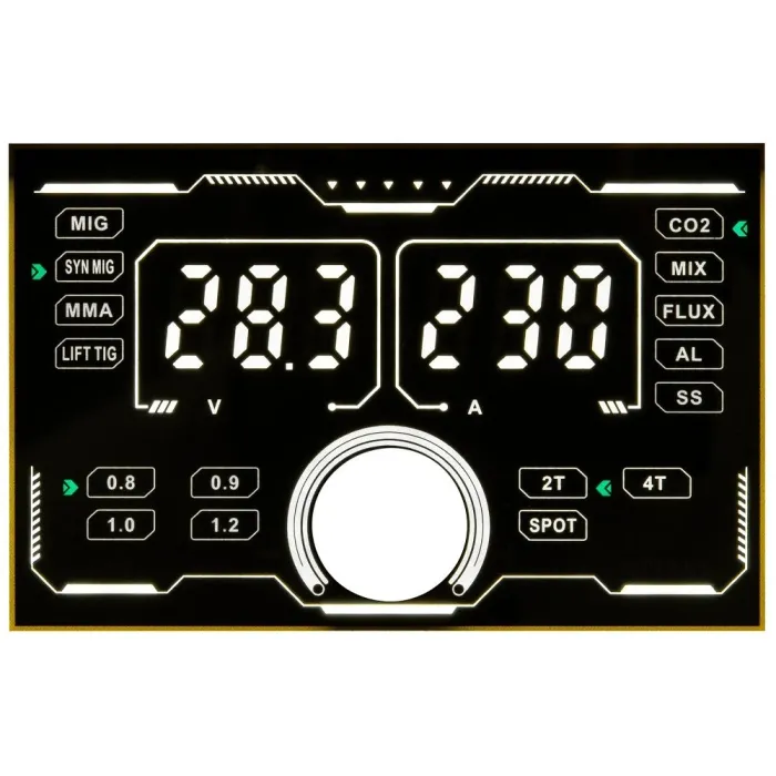 LCD дисплеят показва както напрежение (V), така и ток (A), което ви позволява постоянно да следите параметрите на заваряване, без да прекъсвате работата си.
