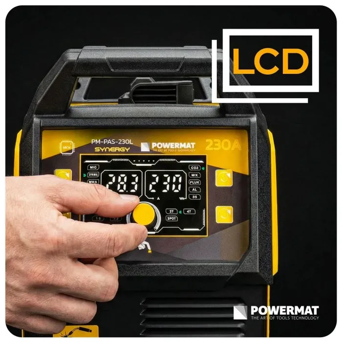 Благодарение на синергията и LCD дисплея, можете да задавате параметри по-бързо и да започнете заваряване без ненужни корекции.