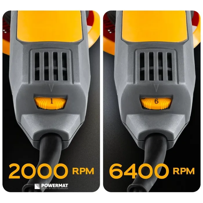 Променливият контрол на скоростта ви позволява да регулирате скоростта според етапа на полиране, осигурявайки по-голям контрол върху резултата и предпазвайки боята. С диапазон от 2000–6400 об/мин можете да работите както върху първоначални корекции, така и върху финални работи.