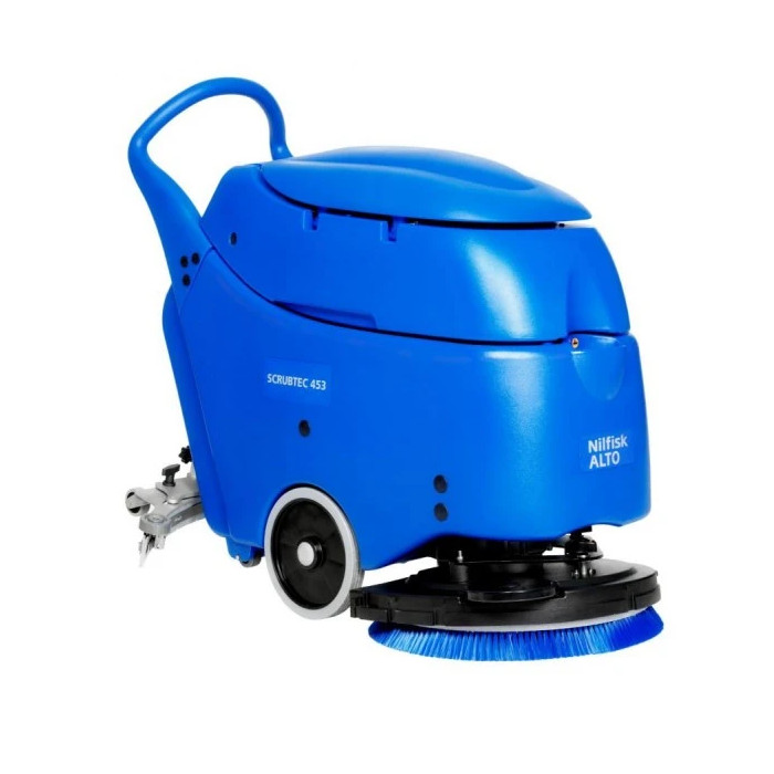 SCRUBTEC 453 B е среден клас подопочистваща машина .Тя разполага с акумулаторни батерии с дискова четка за разтъркване и смукателна система, която се характеризира с голяма производителност и лесна експлоатация. Предлага се с два резервоара с оптимален капацитет – за чиста и мръсна вода. Управлението на машината е удобно и интелигентно, благодарение на бутоните разположени на дръжките, което го прави лесен за пускане и спиране при работа. Лесна и бърза проверка на нивото на водата в контейнера за чиста вода, както и наличие на дренажен шланг за отвеждане на мръсната вода, където е необходимо. Машината разполага с вградено зарядно устройство и LED индикатор на нивото на заряд на батериите. Мощната смукателна система и извития дизайн на смукатела се грижат за пълното изсушаване на работната повърхност. Контейнерът се пълни лесно и бързо през удобния отвор с капачка. Минимална консумация на вода, чрез контрол на изразходваното количество. Пълен достъп до контейнерът за мръсна вода, което е удобно за измиване и поддръжка.