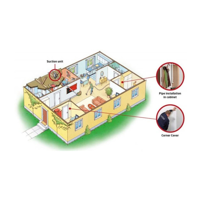 Централната вакуумна система идеално решение за почистване на жилищни пространства до 250 кв.м. Маркуча, който притежава е дълъг 9 метра и покрива площ от 90кв.м. Тази система ви гарантира лесно,безшумно и безотпадъчно почистване на дома. Разполага със самопочистващ се филтър и може да работи с или без торба за отпадъци. Гарантира ви изпразване на контейнера само няколко пъти в годината, защото е с капацитет 20/25 литра.В окомплектовката на машината са включени фитинги, тръби, крепежни елементи, които са необходими за един прост и лесен монтаж. Ръкохватката има LED дисплей с всички функции, 5 степени за вакуум и индикатор за нивото на заряда на батерията.