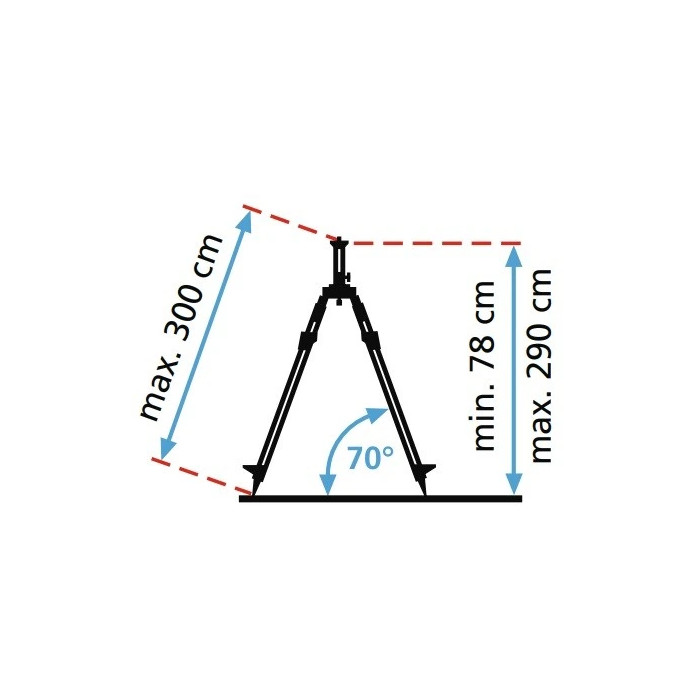 - Телескопичните крака с множество секции и манивелата (31,5 см) осигуряват широк настройващ диапазон.
